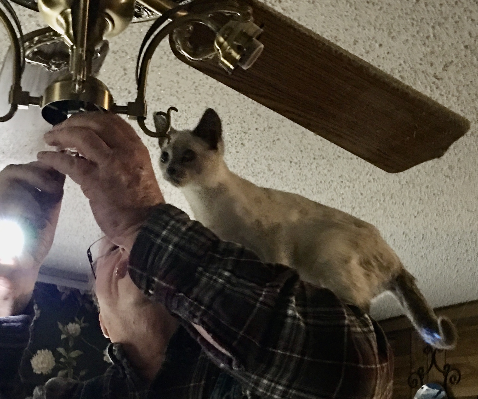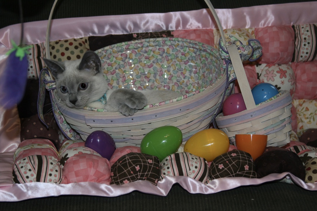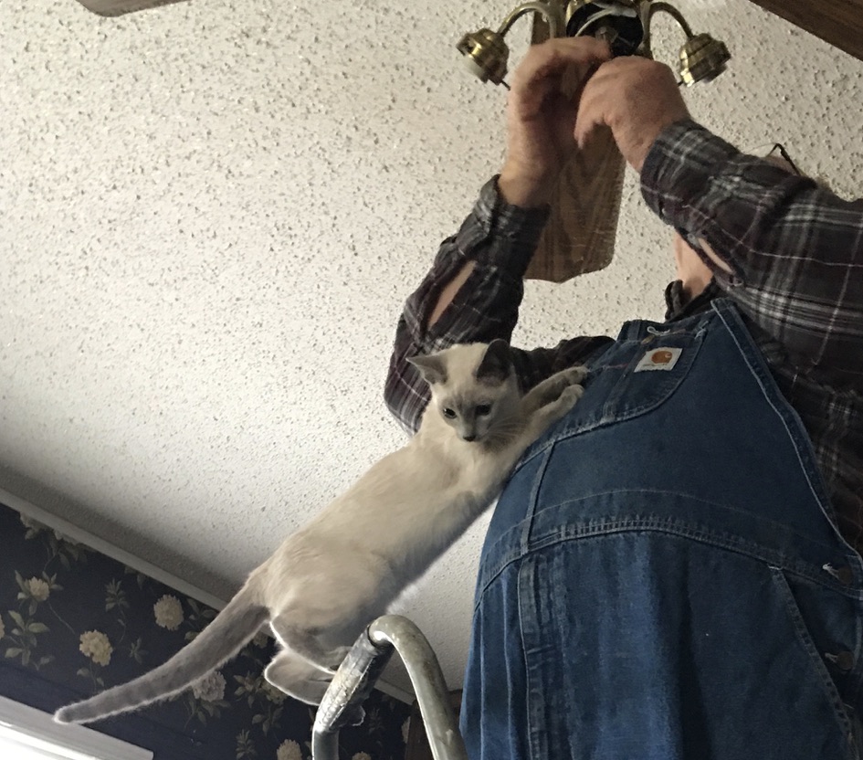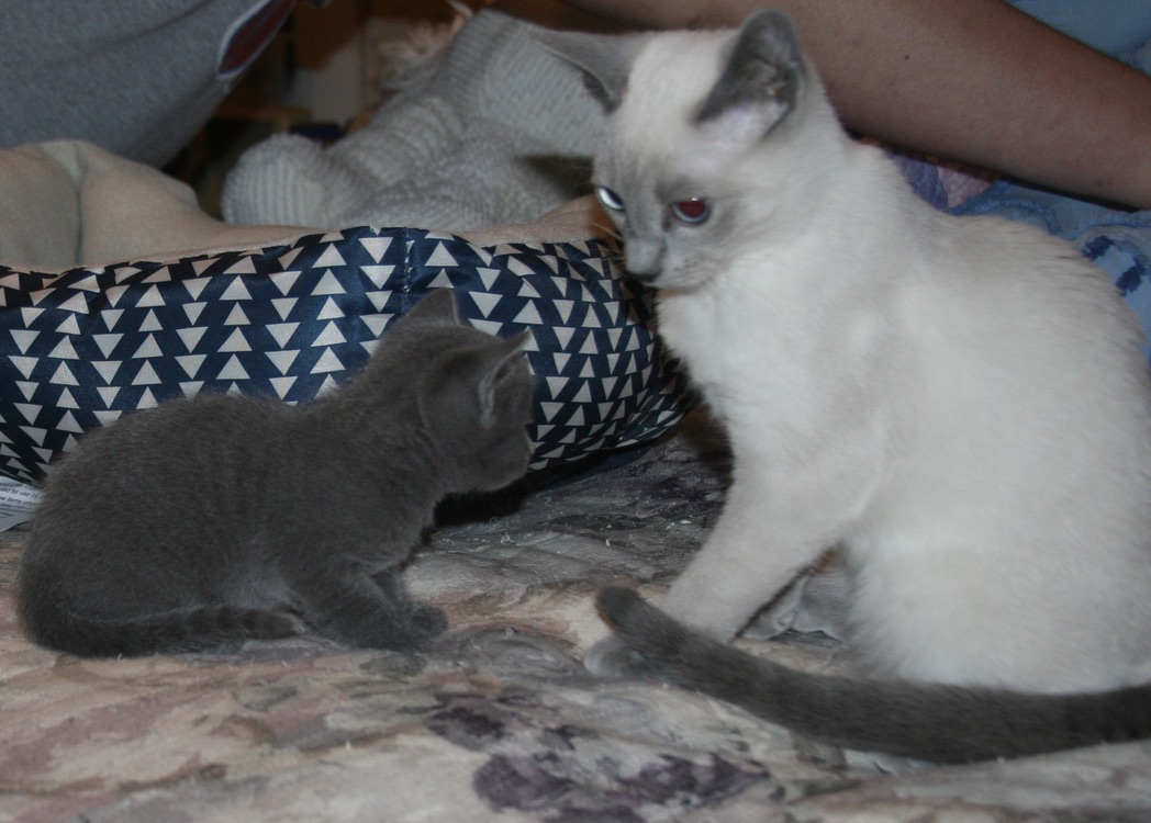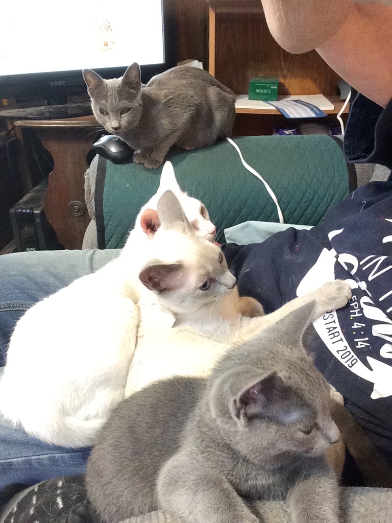 Dasha is a beautiful Blue-Point White Russian. She was born in my living room. She is the sweetest little thing. It seems that she has picked Earl to be her main person. This is a bit unusual as he and the cats normally have very little to do with one another.