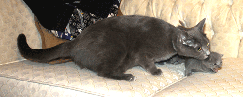 Kiera is a littermate to Garfield II. They have similar personalities and looks. She is an excellent, attentative mother. Her babies are gorgeous.
